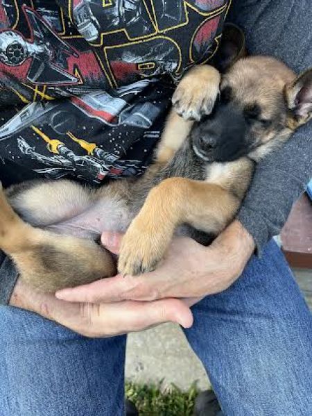 Most of the puppies look like dark colored Malinois including Ace. Ace is in a foster home with cats and another large dog. He gets along great with both. He is a sweet puppy that is full of energy. He loves to play but can cuddle with the best of them. He has been known to fall asleep in his foster's arms.
