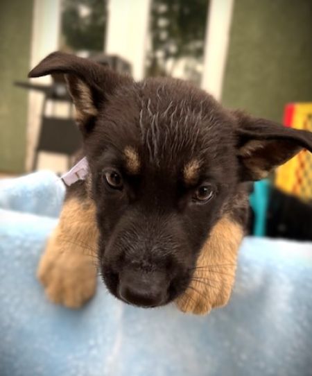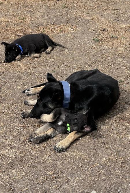 The litter's mom- Robin - was found on the foster mom's front lawn during a heatwave. Robin was lost, tired, and very thirsty. In addition, Robin was pregnant. The foster mom tried to find Robin's home but no one claimed Robin. She contacted Coastal GSR and we told her we would help find homes for the puppies.