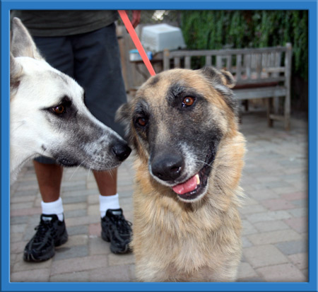 Grrrr, we hate seeing the shelter pix like those that represent Addison. She looks old, scared, hopeless. Nothing can be further from the truth. Addy is this amazing, playful, silly, smart lady. She is one of the lucky ones in a foster home and has taken quite a liking to one of her younger housemates - dare we call her a cougar? She is coquettish in her flirtations with a young man who outweighs her by nearly 70 lbs - she bumps him playfully and he appears to be smitten. They playfully bump around the yard just for fun and then go take naps together.