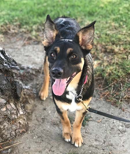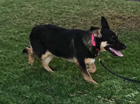 Adele is all healed, full of energy, and no longer needs medication. She is very dog friendly and lived with four female German Shepherd Dogs. She was very shy around strangers, but she went through boot camp and is now much better about meeting new people and obedience trained, to boot. If you're looking for a super sweet, outgoing, lively, dog friendly puppy who is potty trained, and crate trained, this is your lucky day!