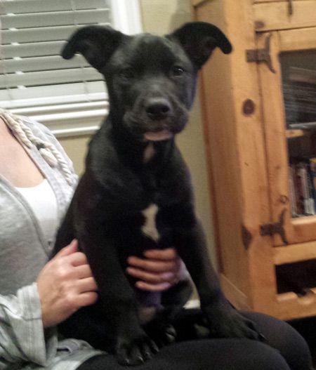 AJ is a growing boy! He's the biggest of his brothers and he loves to eat! He's a playful pup who would really do best with another dog to play with. He sleeps great in his crate and is going potty outside.