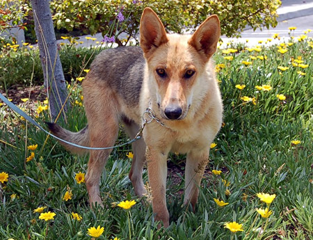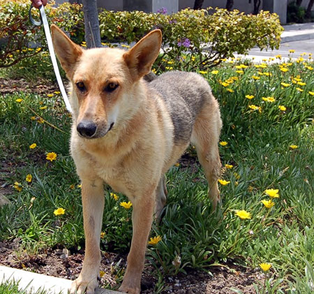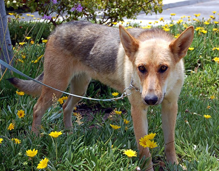 Akeelah came to us with HUGE chunks of hair just hanging from her frame. Frankly, our first viewing of her was less than positive. But, knowing what we know about looking beyond filth, mats and terror made us wait until we got out a wire brush and get started on this girl. It took about 3 seconds for her to absolutely dissolve into gratitude over the grooming of her coat! She IS a typical blonde and we have no idea how she dealt with less than perfect appearance while lost in the high desert and then in the shelter!!!!