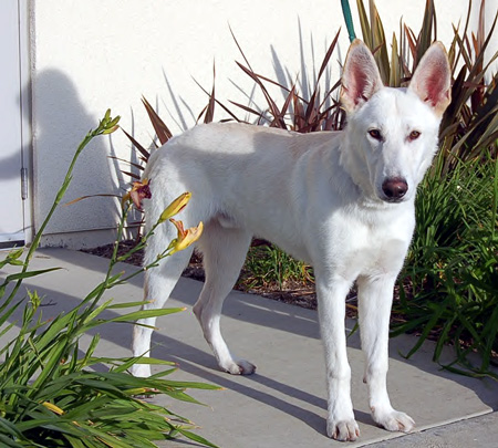 This darling pure white fellow found himself in need of a home just before Christmas. It seems that he had been adopted from a shelter previously, but returned for getting out of a yard. We have no idea what the circumstances of his escape were, but we can only assume that he was---like many of our rescued dogs---left in a backyard 24 hours day with little interaction. Alec is a youngster, and cute as can be! If you are looking for a fun loving guy to spend the holiday season with, Alec could be your guy!