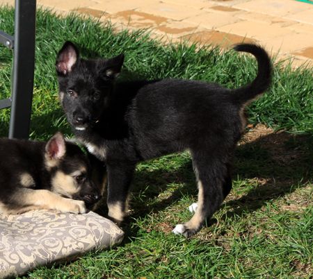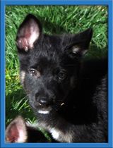 Meet Alfonse! He's an adorable German Shepherd puppy with a cute and unusual name. Alfonse is one of five "A" litter puppies that we were asked to help after his mom died giving birth. Alfonse and his siblings were bottle fed by their foster mom until they could eat on their own. There may be a little something else mixed in there beside the GS because of the white paws. Mom was a purebred shepherd.