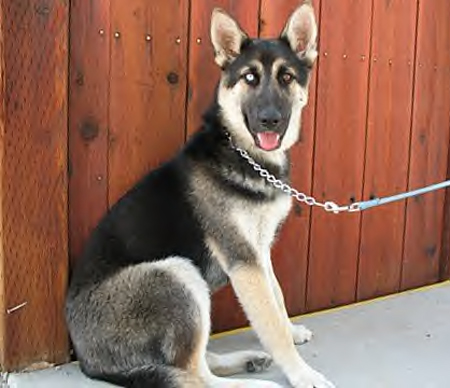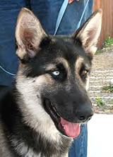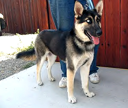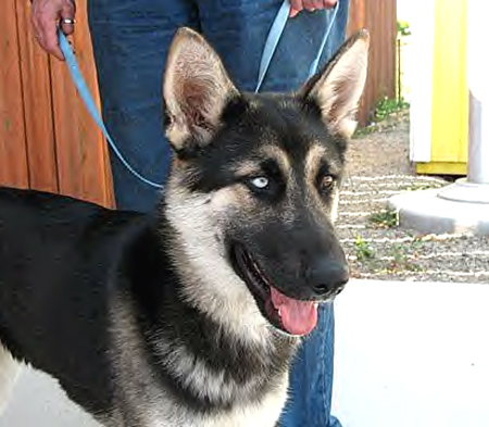 Andie was relinquished to Animal Control after the other dog in her family was confiscated. We don't know the circumstances but most likely abuse or neglect were involved. Andie is none the worse for the wear - she is absolutely the sweetest thing and very affectionate and calm. She is full grown and a perfect petite size. We think there is a little husky thrown in there - the blue eye is suspicious, of course, but she also has the coat of a snow breed even though she is dark. Her white tipped tail gives her even more of a feminine touch!