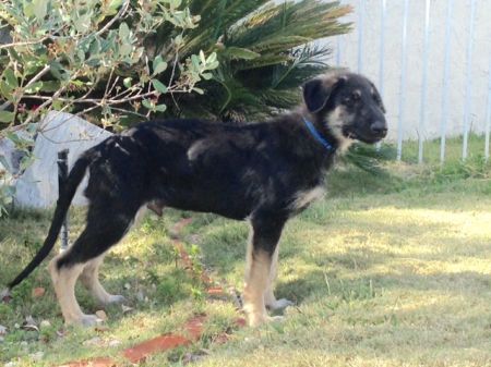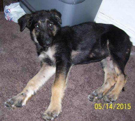 Angus is a male GSD mix (maybe Irish Wolf Hound?) puppy who is approximately 4 months old. It's no surprise this guy was found wandering a playground because he loves kids and cuddling. Angus is cat and dog friendly and is learning quickly about house and leash manners. Although playful and full of curiosity, Angus is quite satisfied just being close to his people and taking a nap.
