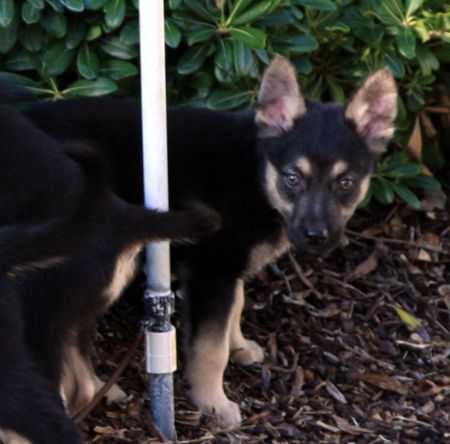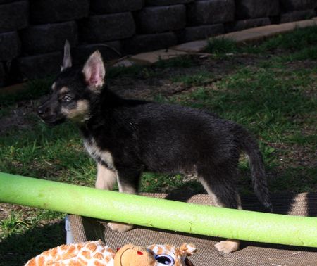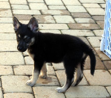 Meet Arturo! He's an adorable German Shepherd puppy with a big personality. Arturo is one of five "A" litter puppies that we were asked to help after his mom died giving birth. Arturo and his siblings were bottle fed by their foster mom until they could eat on their own. There may be a little something else mixed in there beside the GS because of the white paws. Mom was a purebred shepherd.