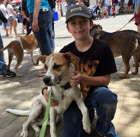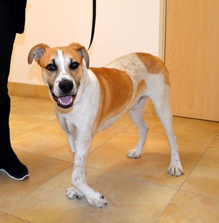 Austin was rescued from a horrible situation where he was hit by a vehicle at a job site and no one did anything to help him for four months. As you can see, his left front leg was broken and healed in an awkward position.