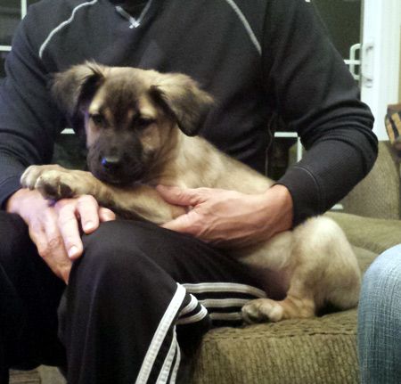 Axel is the most "GSD" looking of his brothers, he's got the softest fur and really cute floppy ears. He's a very playful boy and only stops when it's "nap time". He would best be placed with another dog in the home. He sleeps nicely in his crate and is learning that potty is outside ONLY!