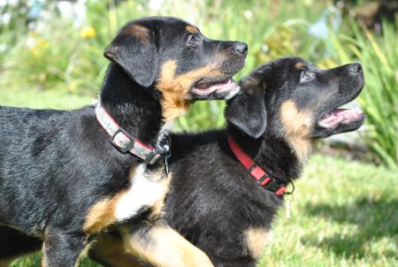 Balto came to Coastal GSR when he was only 2-3 days old. He has been in a foster home with his mom "Bucket" and brother Bert since then. Their mom appears to be a mix of German Shepherd and Australian Shepherd and weighs only 45 pounds. Balto will be similar to his mom in size and appearance. He has been crate trained and is almost house broken. He and his brother have been around other dogs and puppies and are very social. They started puppy obedience training and are star pupils since their foster mom is a puppy and dog trainer. If you are looking for a sweet puppy who will grow up to be a sweet dog, that will not be too large, then Balto is the puppy for you!