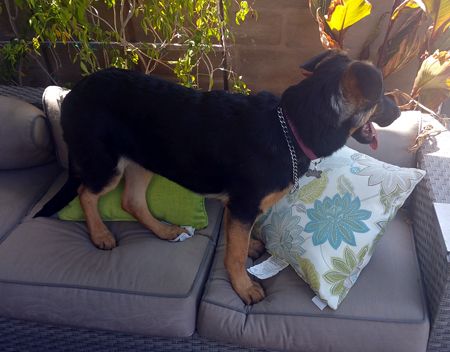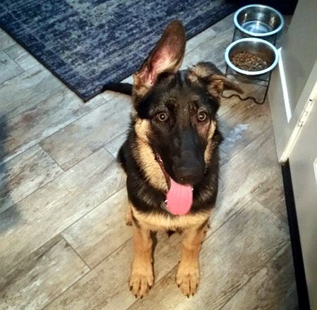 Bambi - also known as Bam-bam - is a four and a half month old German Shepherd puppy. She was rescued from a backyard breeder when she was 8 weeks old. Her rescuer was not able to keep her due to illness and asked Coastal GSR to find this precious baby a good home. Bambi is currently in a foster home where she shares the house with a one year old male GSD, a five year old female GSD plus two small dogs. She is a little shy at first around people and other dogs but quickly warms up to them. She rides well in a car and knows some basic commands. Bambi currently weighs 45 pounds and has huge paws. Her ears are just starting to stay up. She will grow up to be a big beautiful German Shepherd.