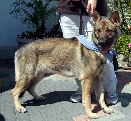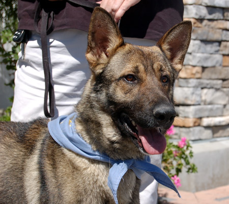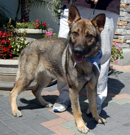 Barrett was rescued just in the nick of time. We were just made aware of a county "over-flow" facility where the animals are euthanized after 4 days regardless of their adoptability. This warehouse serves as an overflow for the county facility when it is full. Unfortunately, no one knows about this facility and rarely are animals adopted from here. It is very sad that this continues to go on. Barrett was brought to our attention by a small group of rescuers who are trying to rescue and place as many animals as possible from this holding facility. The group wasn't sure if Barrett was a German Shepherd as they had never seen the sable coloring. When we saw pictures of Barrett, we knew we had to save him. He is all of two years old and sweet as pie. His scar across his face tells a tale of abuse or injury--which one we are not sure. He is happy go lucky with all that he meets!