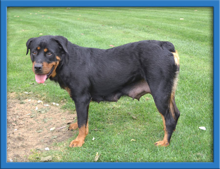 Basil and the B babies had a rough start. They were turned into a county shelter as strays and sat in a cage at the shelter waiting to be rescued. Thankfully we were able to rescue the entire family! Momma is a spectacular rottie with an amazing temperament. Her puppies are now 8 weeks old and ready to go to homes of their own!