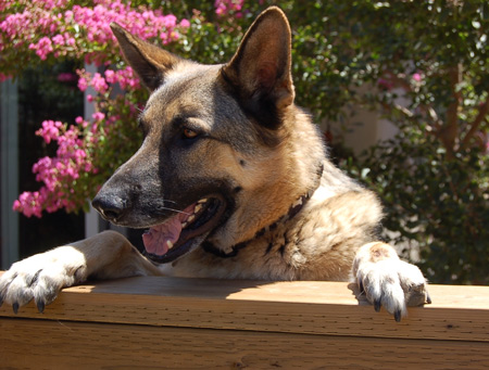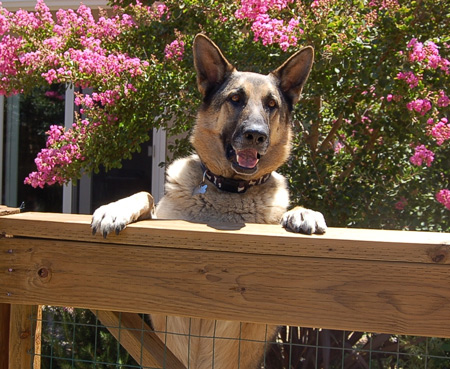 Bear is fantastic with toddlers, and knows cats quite well. The kitty was the only one allowed in the house, all Bear could do is stare from the screen door. Never once did he try to chase the cat or eat the cat, and believe me if he wanted to chase the kitty he could have easily broken down the screen door and the main door with it. Bear is about 110 pounds, which means he does need to be on a diet program which his foster home is providing for him. But he needs to lose just about 10 lbs, not 20 or 30!!!