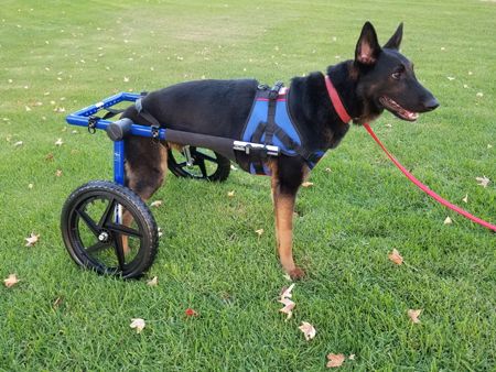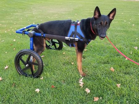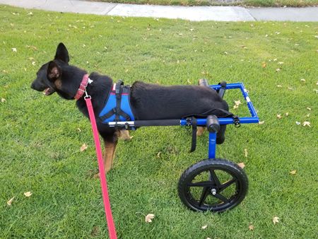 Beau is just about a year old. He had a congenital deformity in his left rear leg when he was rescued from the shelter. That leg was amputated and now Beau is struggling to learn to walk using his right rear leg. He had a surgery and physical therapy to try and help but he still has issues using his rear leg when trying to stand and walk. He has recently been fitted for a cart to give him support as he develops strength in his rear leg and builds up his stamina. He is adjusting to it but still tires out.