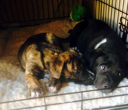 These 4 puppies are an unusual mix and will be big dogs when fully grown. Their Mom is a Mastiff/St Bernard mix and Dad is a Shepherd Lab mix. They were surrendered to us by their owners when they were weaned and have been raised in a couple of our foster homes for the past couple weeks. They are now ready to find their forever families. We are currently screening applications for these pups and they will be ready to go home after February 1st.