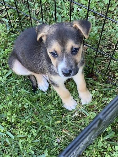 Bumper, Becca, and Benjie are about 5 pounds each and look more like the Husky side of mom than the German Shepherd.