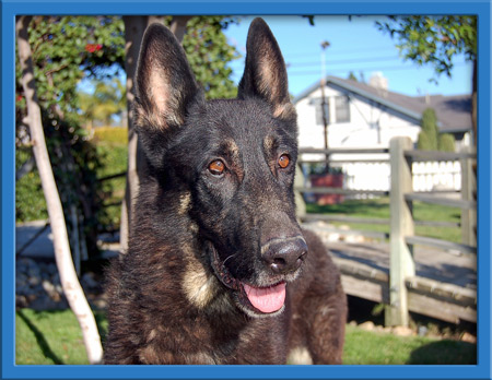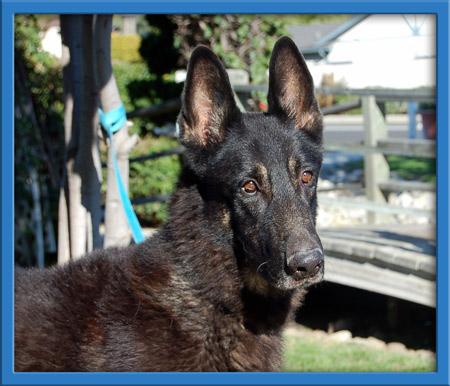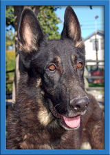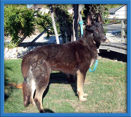 Bart is about 3 years old - very tall dark & handsome if you ask his admirers!!!! He walks great on a leash, is very friendly with other dogs and appears to have some training.