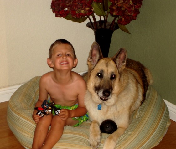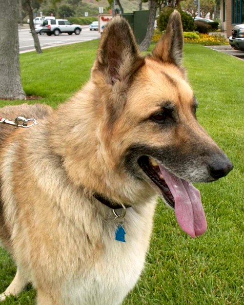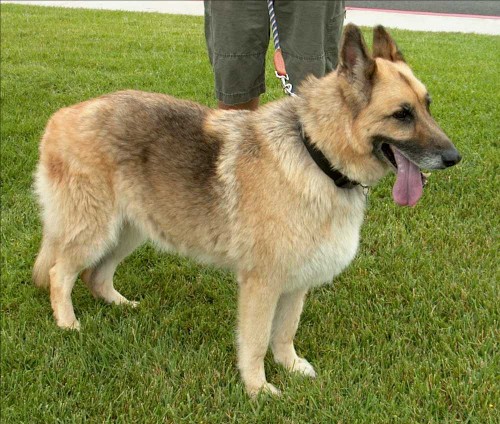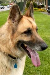Blaze is the ultimate example of what a mature German Shepherd embodies. He is so graceful, loving, protective and sweet as pie! He gets along with other dogs --large and small-- and cats! Blaze is content laying on his dog bed for most of the day, although he LOVES going for a walk and will even hold the leash in his mouth for ya! He does have a bit of arthritis, but nothing a good diet and glucosamine supplements can't help!