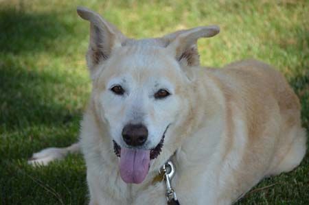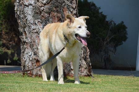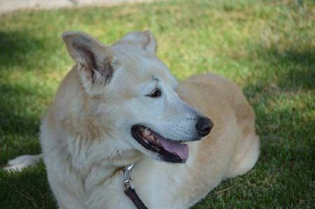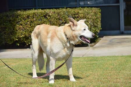 Blondie's not going to run any marathons, as she's around 8 years old and has an older gal's hips, but she's happy just to walk around the block or hang out at home with her family. She's super sweet and would easily slide in to any household.