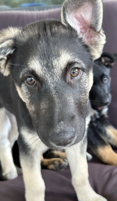 Meet Bodie! He is a "bob tailed" German Shepherd. His ears are up but his tail is short. He is one of the fun loving brothers in the "B" litter. He has a big personality and loves, loves, loves other dogs.