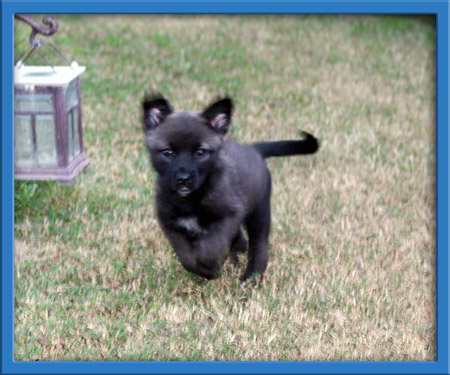 Mama Bailey delivered her babies in a scary animal shelter. Doing her best to protect and care for them, she was labeled aggressive by the workers and her chances of getting out alive with her newborns were growing slimmer with every day that passed. It seems since Bailey was not a recognizable breed, no other rescues stepped up to save her and her new born puppies. Finally came the fateful day when she and her nine day old puppies were placed on the euthanasia list. While we were full, we couldn't stand by and let these precious babies and their wonderful mom who kept them alive under such dire conditions die. Our dedicated volunteer made the trek to the shelter he was at the previous day rescuing another large family and whisked this family to safety.