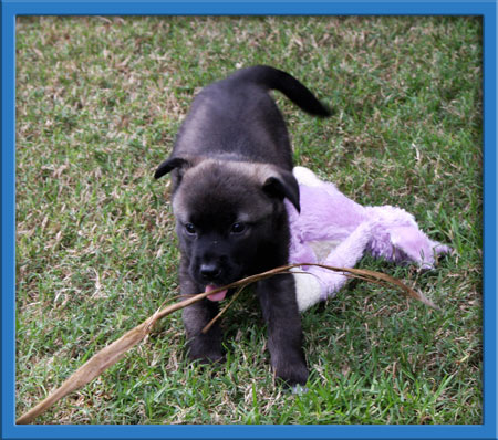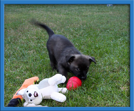 The "Bailey Bunch" have thrived in the safety of their foster home and the wonderful care of their mom. They are very smart, social pups who love the attention from both their human and animal friends. They love to play, especially with their toys. Since mama Bailey is on the smaller side and appears to be perhaps a Lab/Cattle dog mix, these pups should remain on the smaller side as adults. While they each have their own personalities, as a group they all seem to have their mom's sweet, loving temperament and her playful nature. If you are looking for an active loving puppy, consider one of our "Bailey Bunch".
