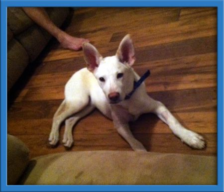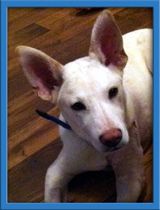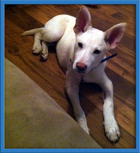 Bolt is a sweet good natured white shepherd pup with typical puppy energy. After he was released from the hospital, he's been able to go into a foster home with small kids and another dog. His foster mom is already teaching him how to sit and lay down; of course, they are also working on housebreaking.