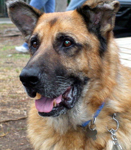 Boomer is about 8 years old. He's potty trained (amazing when you consider this is the first time he's probably ever been in a house) and gets along with the three other shepherds in his foster family. The highlight of Boomer's day is when his foster mom and sister get home. He gets off his bed and greets them at the door. The only things Boomer wants are good food and a warm bed. Will you open your home and heart to our dear, sweet boy?