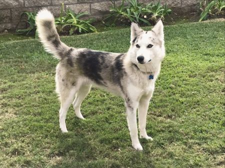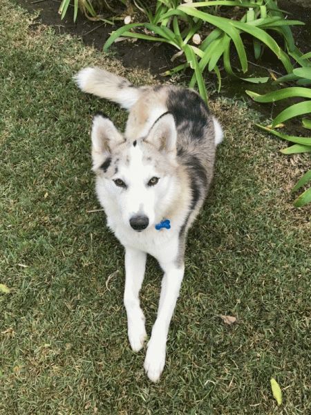 Meet Bourbon. He’s a very unique Merle Husky mix. He’s about ten months old and needs a family that understands how much energy a young Husky has. He’s presently in a foster home with another dog and has met numerous other dogs without much of a problem. He’s house broken and doggy door trained but he’s still working on crate training. He walks on a leash but as in typical Husky fashion he wants to be out front pulling so his foster mom is working on that. His ideal home would have another dog that will match his energy level and/or a human who can dedicate a lot of time to him. Before you fall for his good looks, please do some research on the unique needs of a young super energetic Husky.