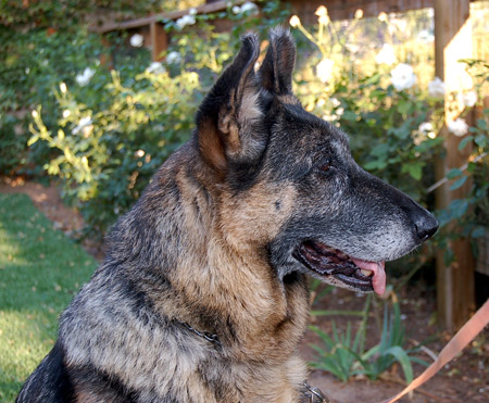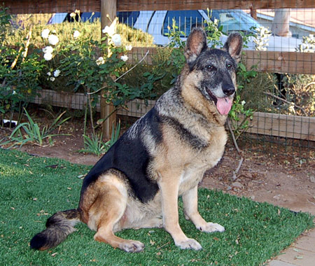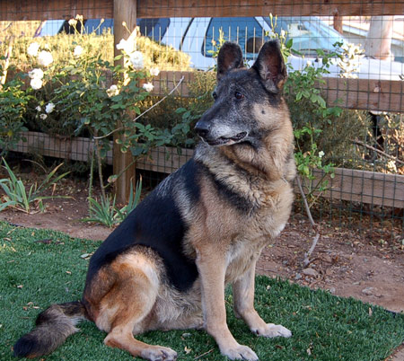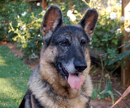Brandy is now living in a foster home FILLED with other German Shepherds and she fits in very easily. She even likes 11 week old puppies who like to crawl on her back. Brandy has shown a talent for counter surfing so even though she's a bit low in her hocks, she is strong as an ox with all her faculties. Brandy has several years left on this planet and we are praying for someone to take her in as their own so that she can live the second half of her life as a pampered queen.