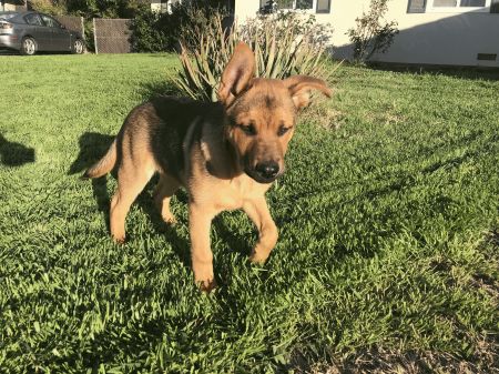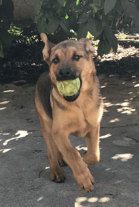 Bravo and his brother Bandit were found in a junkyard in Riverside. The two boys relied on each other and were able to survive until Good Samaritans got them and brought them in to be rescued. For being on their own, both boys are very friendly with people and other dogs. They have been placed in separate foster homes because Bravo kept wanting to play with brother Bandit who had surgery for his umbilical hernia and had to wear a cone. Bravo is a good boy who loves the two other female GSDs in the foster home. He is not friendly with the cats. A home that has a friendly older female dog who would like a young buddy to play with would be perfect for Bravo. He is approximately 4 months old and does well in a crate and is potty trained.