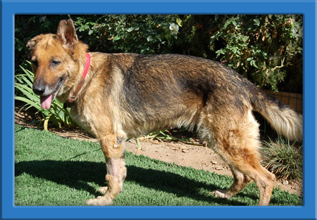We've seen some pretty destroyed ears over the years, but Brea's are certifiably the worst we've ever seen. We wondered aloud how her "family" could sit and watch as her ears were destroyed by flies over the years. When we first met her, we thought she was much older than her paperwork that states 5 years old. Clumps of hair were hanging off of her side and haunches, her coat never having been cared for.