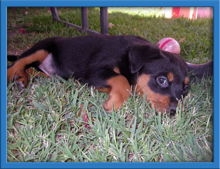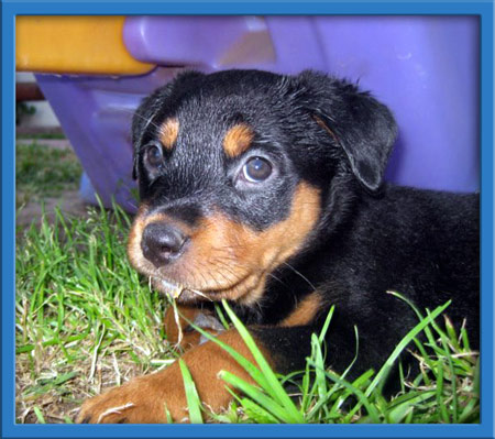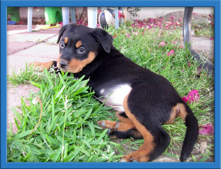 Basil and the B babies had a rough start. They were turned into a county shelter as strays and sat in a cage at the shelter waiting to be rescued. Thankfully we were able to rescue the entire family! Momma is a spectacular rottie with an amazing temperament. Her puppies are now 8 weeks old and ready to go to homes of their own!