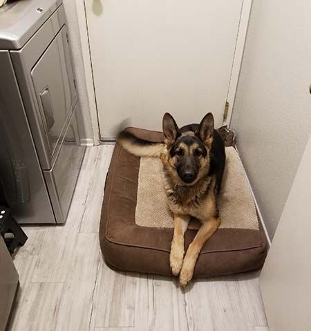 Bridget is going to need a home with GSD experience, as she tends to get very protective of her family and their dwelling. Because of this, she'd do better in a home without children, as they tend to be very high traffic (even though she is good with kids). She's a lover, a cuddler, playful as all get out, and needs someone who understands how to handle a dog who, if left to her own devices, would protect you to the extreme.