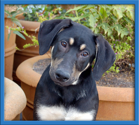 Bridget is an adorable young lady who has been well socialized with big dogs and cats - she loves the cats, the cats don't necessarily return the favor! She can keep up with the big dogs in her house and is more of a tomboy than her sister, Bambe. She is crate trained and will sleep through the night without a peep!