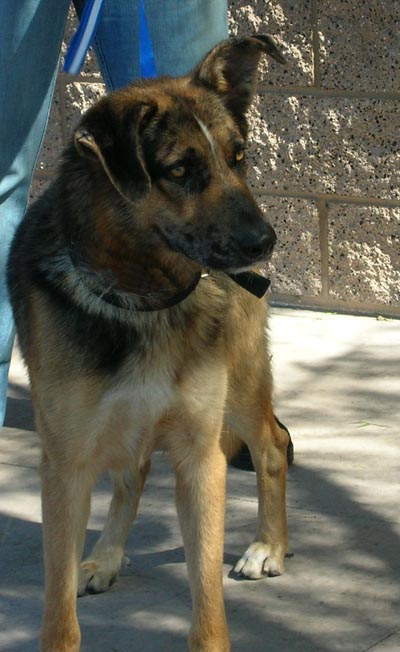 This long legged handsome boy probably has some Australian Shepherd mixed in with German Shepherd. He has mysterious eyes to go with his brindle coat.