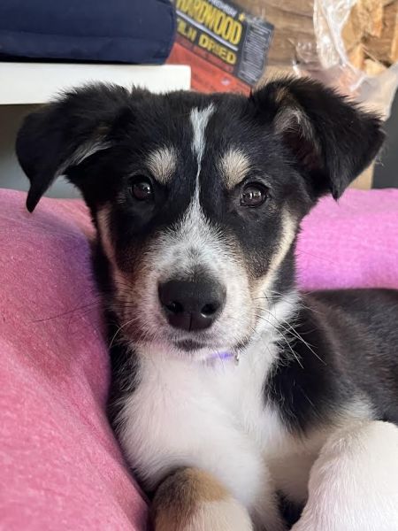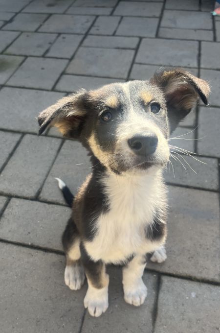 Bulleit is one of five puppies that recently came to Orange County to join the Coastal GSR family. He and his siblings appear to be a mix of Australian Shepherd and possibly German Shepherd. Bulleit misses his siblings but has been trying hard to make new friends with his foster siblings. He loves to snuggle with the younger dog and he has his eye on her toys!. Bulleit is sweet, smart, and playful.