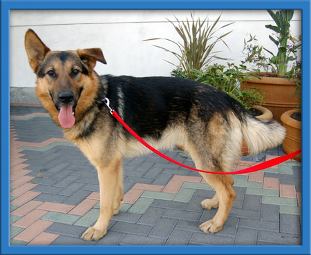 Caine is a 'leaner' - he loves to be brushed and will wiggle his butt around so you will give him a good scratch. He has made great strides in socialization and does pretty well with most dogs that he meets. He walks nicely on a leash but, like most, will benfit from an obedience class. He'll probably do best in a home with kids older than 10 - his size is such that he could probably knock the little kids over.