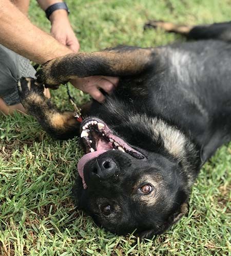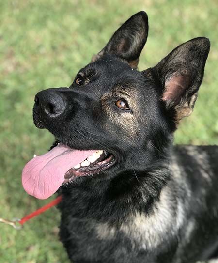 This looker doesn't appear to have had any training before we met, including knowing how to walk on a leash, but she's working on her obedience game while with us. She's very smart and food motivated, so the sky is the limit! Callie's starting to understand what is expected of her and we know she's going to be amazing with someone who will continue her training. If you're looking for a young sable to join your family, Callie will give you years of laughs, cuddles, and fun.