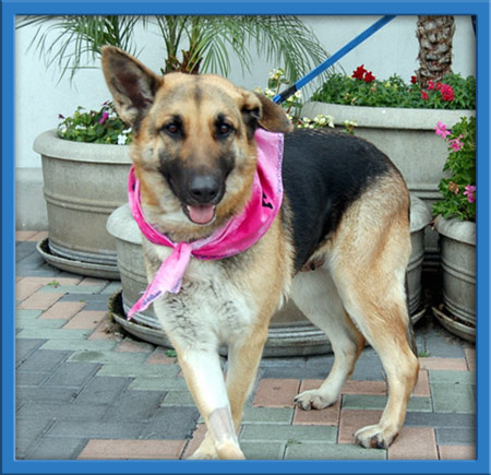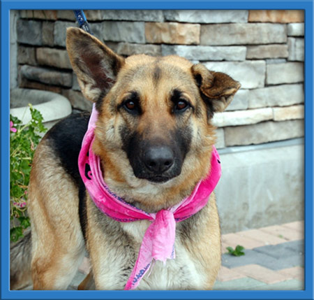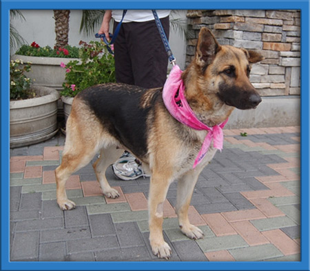 Camille was known only as A0940643 at the Orange County Animal Shelter. She is a very sweet German Shepherd who is probably around 5 years old. She was not feeling well and had to have an emergency spay yesterday. It was found that she had severe pyometra (a uterine infection), more than likely caused from being a breeding dog. She did great with the surgery and is very perky today.
