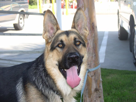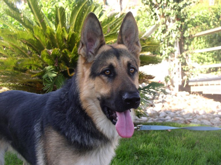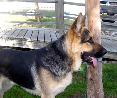 He seems to like kids, although he might be too much for young ones. He will need a strong leader to help him become the regal boy he should be. He appears to walk well on the leash, but will need more training, as most german shepherds do.
