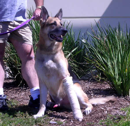 Cassidy got out of the house & got his leg fractured when he was hit by a car August 2, 2006. A good Samaritan brought Cassidy into an emergency vet, and then he was taken to the East Valley shelter to contact his owner.