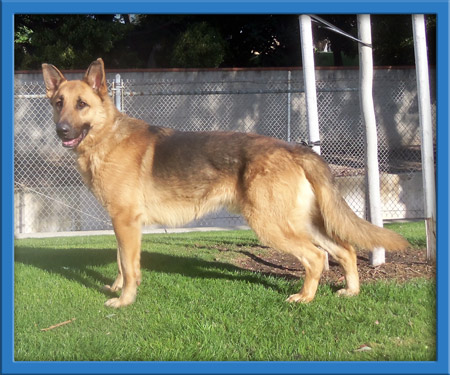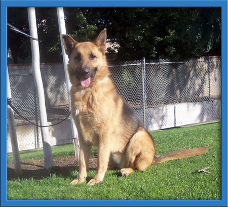 Champ is currently at K-9 Adventures in Covina and is excelling at obedience training with his trainers, Dave and Paula Guild.