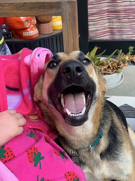 Charly left the hospital for a foster placement and has thrived in a home environment. Around 50 pounds, she adores children and has two besties with whom she's obsessed. She's also got a canine companion in her foster home and gets along well with him, but would prefer a less playful dog who likes to join her in couch potato activities more than wrestle. Charly is crate trained (the crate is her princess hideaway and one of her favorite places), potty trained, and good in the house. She is still very timid with and scared of strangers, but warms up to new people as she learns to trust them. What used to take a week now takes a couple of days and we have no doubt that with the right family she will thrive and get better and better!