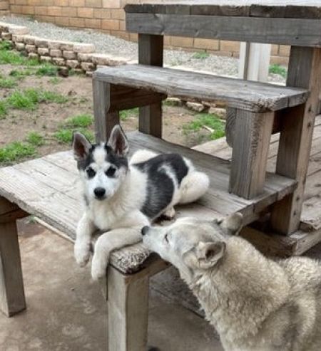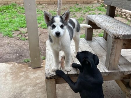 Meet Chloe, she’s a 10-12 week old "splash coat" Siberian Husky puppy who was rescued from a bad situation in the desert. She has a beautiful splash coat and typical Husky puppy energy. She’s super playful and loves playing with her canine foster brothers and sisters. She is also very friendly and adores people.
