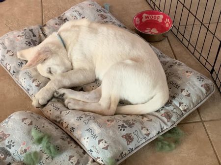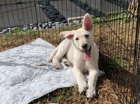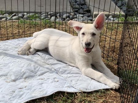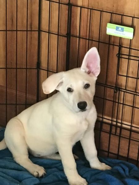 Chloe and her siblings were rescued from a backyard breeder in the Inland Empire. The puppies, and their parents, were living in extreme filth. The parents were supposed to be purebred white German Shepherds but Chloe appears to be a mix of GSD and Lab. The puppies were born at the end of December and Chloe is approximately 3 months old.