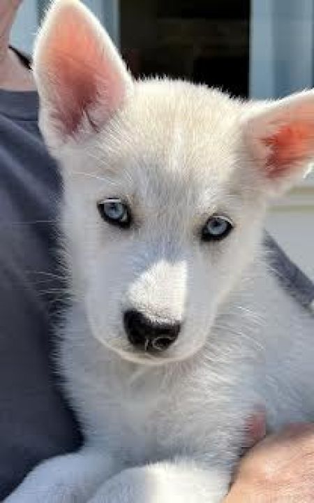 Cielo (green collar) Picture an icy blue lake in some northern clime and there you are, looking into this little girl’s heavenly deep blue eyes. She’s the only one of the litter with a pair of blue eyes and wow(!!) are they beautiful. They match her personality too, little miss mellow Cielo. Her silvery, black tipped coat is soft and short haired. Her personality is calm in the midst of the storm. She reaches up on us to be held and enjoys snuggles. A wonderful little girl who desires a peaceful corner and a quieter home without small children.