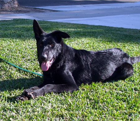 Cinder is going to be very large for a female shepherd - her feet are as big as pie plates. She is very willing to learn and will greatly benefit from an obedience class. Daily exercise will be important to help her have a job and get that energy out. She is good with other dogs and would make a great playmate. She loves toys and chasing balls too!