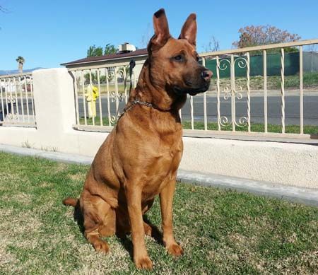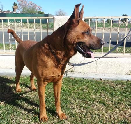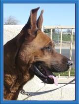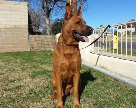 We believe he is about 4 years old. He has a lovely red coat, enjoys being with people and walks well on a leash. He met several dogs during his stay at the shelter and seems to be an easy going guy.